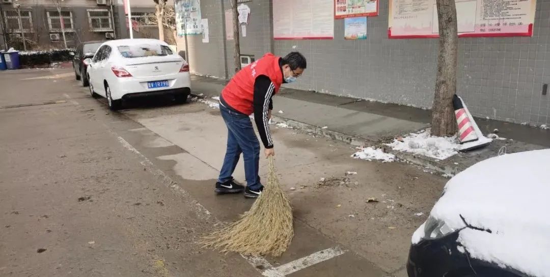 活動當(dāng)日剛剛下過一場雪?;顒又?,黨員志愿者們不怕辛苦、不懼寒冷,對小區(qū)內(nèi)公共體育設(shè)施、單元樓門把手等地方進行消毒,對社區(qū)所轄小區(qū)的衛(wèi)生死角進行了清掃,對樓道、車棚內(nèi)非機動車進行了有序排放,同時向社區(qū)居民積極宣傳文明城市復(fù)審工作,讓社區(qū)居民自覺行動起來,參與到文明城 市復(fù)審工作中來,共同維護整潔、舒適的居住環(huán)境。