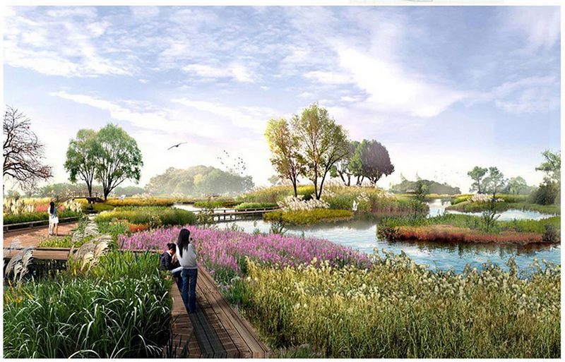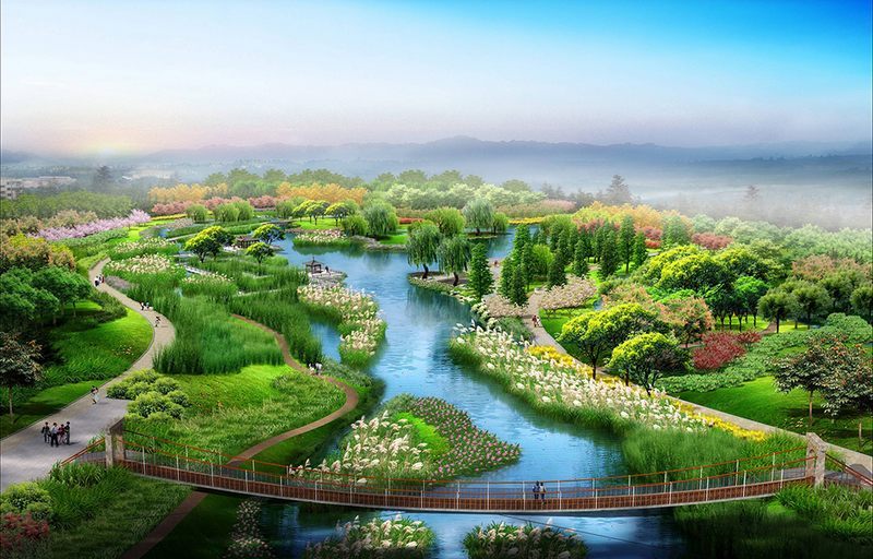 虞河上游綜合整治景觀工程位于虞河上游,是自南向北的重要景觀綠軸。定位為“生態(tài)、自然、簡約”的郊野公園,圍繞生態(tài)河道和郊野公園做重點(diǎn)設(shè)計(jì),達(dá)到生態(tài)與景觀相融合、景觀與人文相結(jié)合。以野為美,重點(diǎn)突出野趣。在設(shè)計(jì)理念上堅(jiān)持治水與親水功能并重,兼顧恢復(fù)自然生態(tài)環(huán)境與滿足人們休閑、娛樂、健身等多層次需求,打造以人為本的公共活動(dòng)空間,同時(shí)與濰坊歷史文化密切融合,景觀設(shè)計(jì)應(yīng)結(jié)合周邊環(huán)境,使濱水空間和城市空間相互滲透,有機(jī)的融為一體。整個(gè)景區(qū)景觀層次分明、水景表現(xiàn)豐富,注重植物的色相、季相變化。春觀油花海,夏觀荷柳蔭,秋觀楓葦?shù)遥^松竹雪,呈現(xiàn)四季常青、三季有花的生態(tài)水景觀效果。