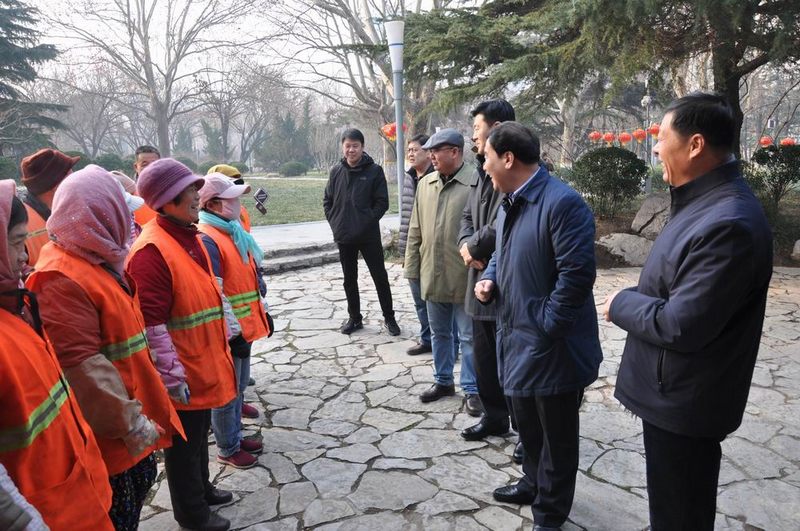 在市人民公園,張長(zhǎng)坤主任詳細(xì)了解了濰坊市園林環(huán)衛(wèi)集團(tuán)改制重組后的企業(yè)發(fā)展以及人民公園精細(xì)化養(yǎng)護(hù)作業(yè)情況,并與園林環(huán)衛(wèi)工人代表逐一握手交談,為他們送上慰問(wèn)品。