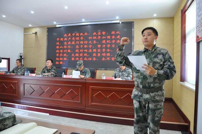 ▲集團(tuán)黨委副書(shū)記宮君帶領(lǐng)全體民兵面對(duì)國(guó)旗莊嚴(yán)宣誓