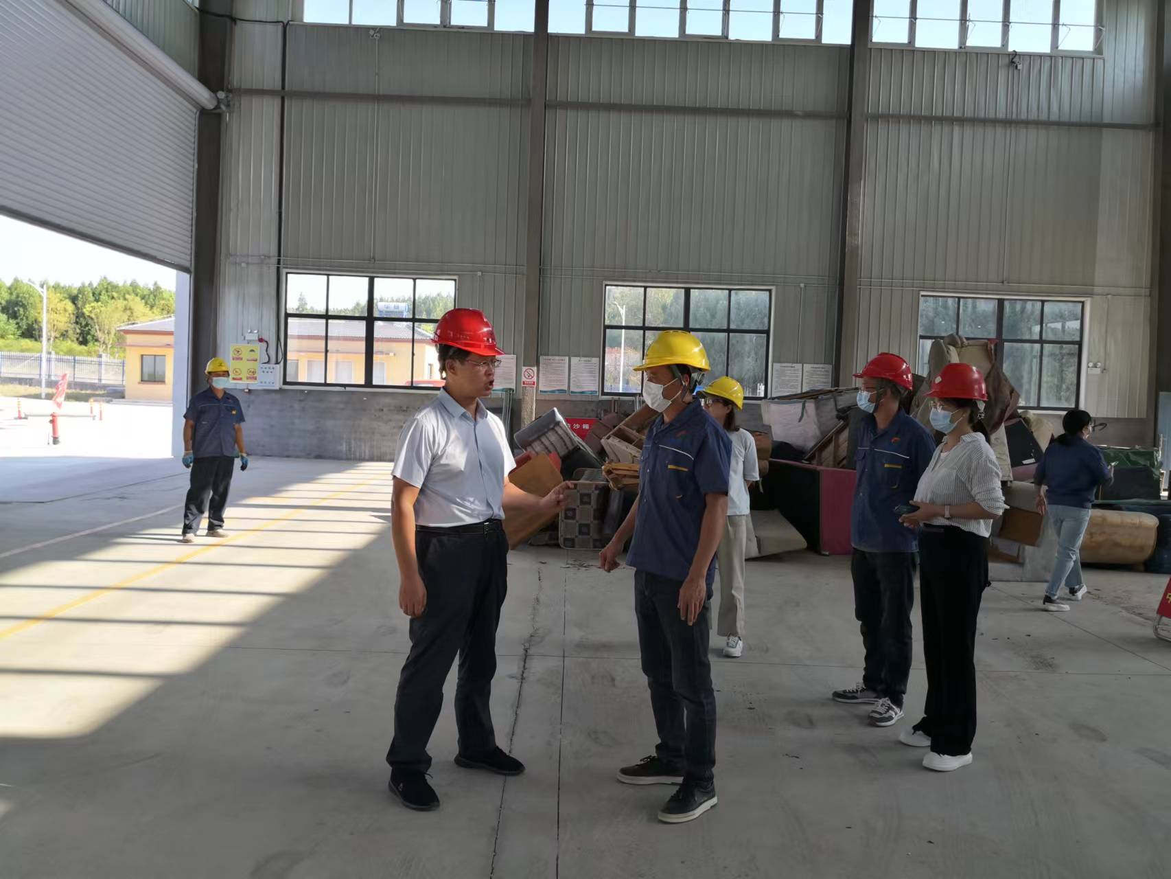 ▲副總經(jīng)理管從茂在大件垃圾處置項目車間進(jìn)行安全督查