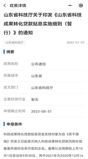 點(diǎn)擊任意一個(gè)政策,即可進(jìn)入到該頁面。上半部分提取出來的摘要信息,包括政策類別、所屬城市、發(fā)文部門、主要扶持行業(yè)、申報(bào)截止時(shí)間、申報(bào)條件、扶持內(nèi)容、申報(bào)材料??梢苑奖阒庇^的了解到該政策的重點(diǎn)內(nèi)容。下面則是該政策的全文。方便詳細(xì)了解本政策的全部內(nèi)容。