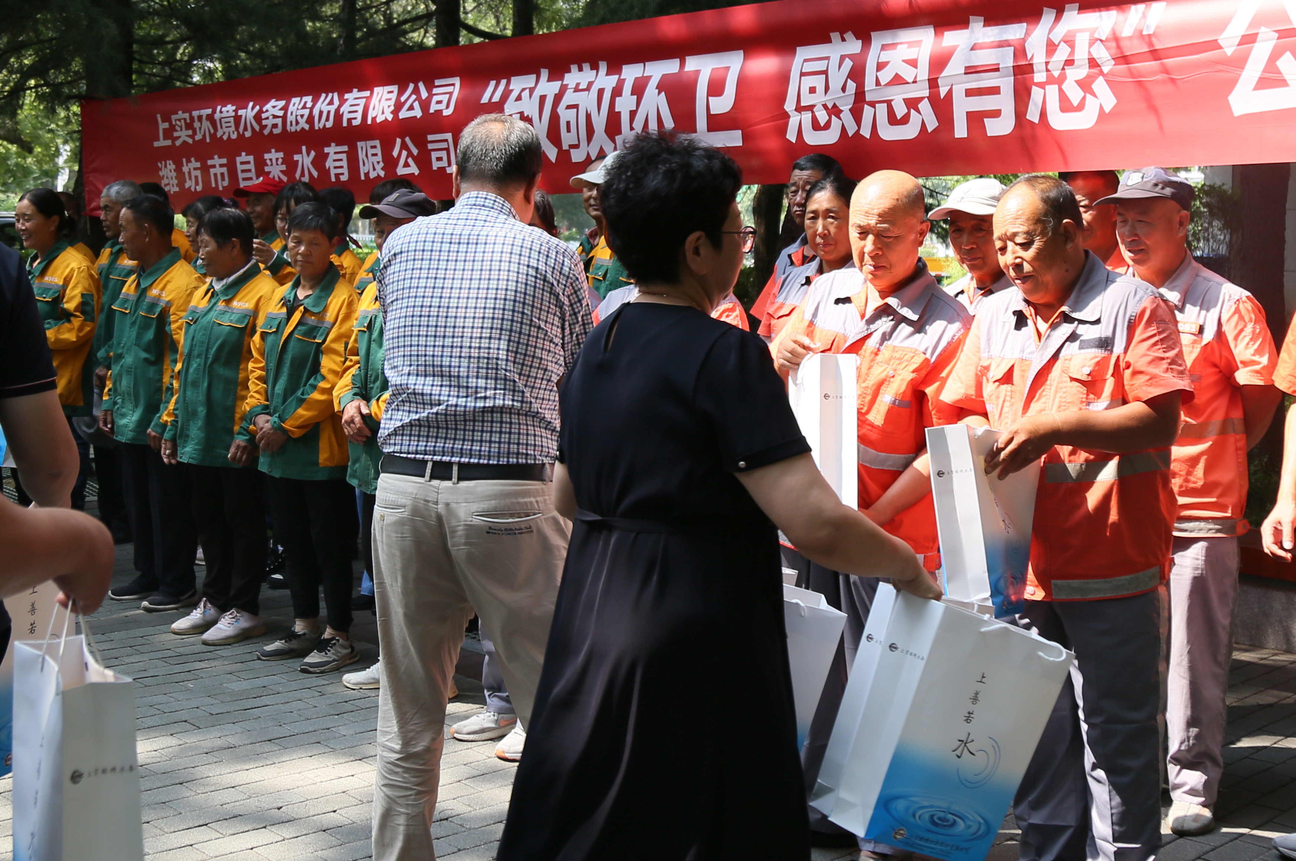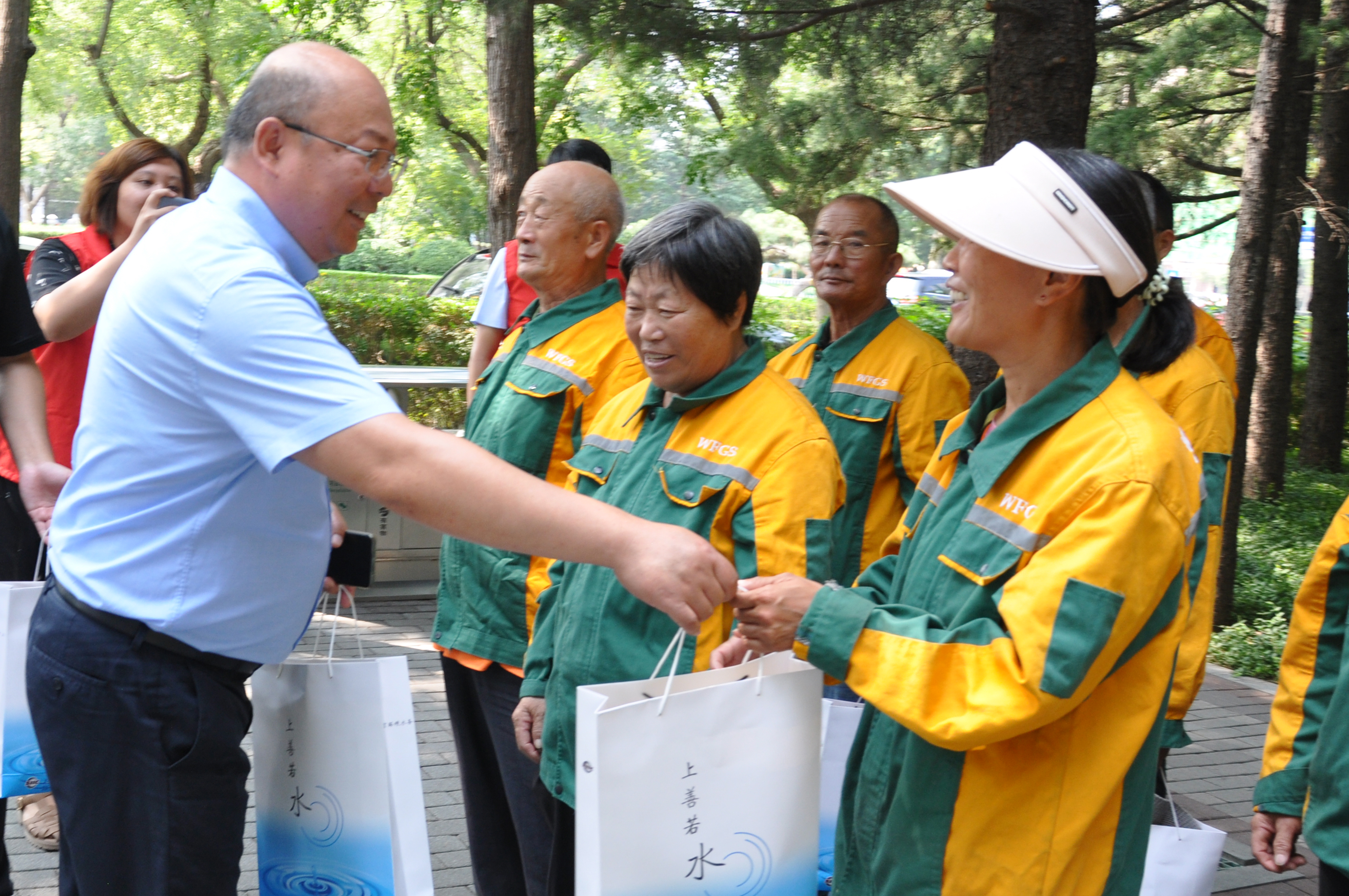為深入學(xué)習(xí)貫徹習(xí)近平新時代中國特色社會主義思想和黨的二十大精神,充分發(fā)揮黨員先鋒模范作用,為一線園林環(huán)衛(wèi)工人辦實事、做好事。9月5日,上實環(huán)境水務(wù)公司、市自來水公司在市園林環(huán)衛(wèi)集團代管市直管綠地北海路口袋公園筠石園開展了“濃情金秋·愛心慰問園林環(huán)衛(wèi)工人”的志愿服務(wù)活動。濰坊市城管局二級調(diào)研員臺炳友,市園林環(huán)衛(wèi)服務(wù)中心黨委委員、副主任任孝云,環(huán)衛(wèi)保潔服務(wù)科科長閆祥密,上實環(huán)境水務(wù)公司紀(jì)委書記、工會主席范曉東,市自來水公司副總經(jīng)理王吉濤,集團公司黨委副書記、總經(jīng)理單云華,副總經(jīng)理管從茂,黨委副書記宮君出席了本次活動。