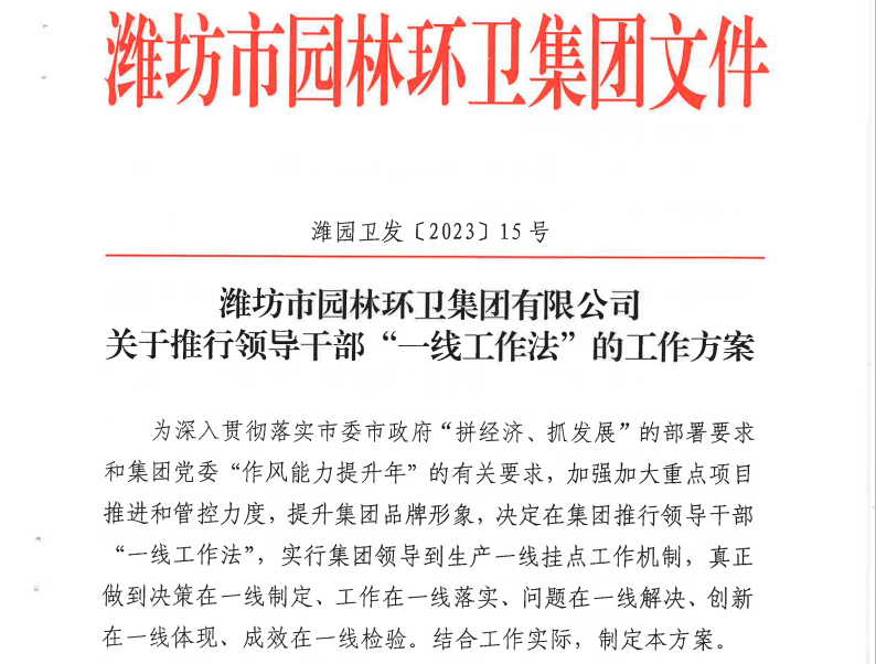 2023年4月以來,市園林環(huán)衛(wèi)集團(tuán)深入貫徹落實(shí)市委市政府“拼經(jīng)濟(jì)、抓發(fā)展”的部署要求和集團(tuán)黨委“作風(fēng)能力提升年”的有關(guān)要求,加快加大重點(diǎn)項(xiàng)目推進(jìn)和管控力度,提高集團(tuán)區(qū)域影響力和核心競爭力。在集團(tuán)大力推行問題在一線發(fā)現(xiàn)、決策在一線制定、創(chuàng)新在一線體現(xiàn)、工作在一線落實(shí)、成效在一線檢驗(yàn)的“一線工作法”,實(shí)現(xiàn)了工作重心下沉,管理方向前移,不斷推動市直管綠地綜合管理提質(zhì)增效。