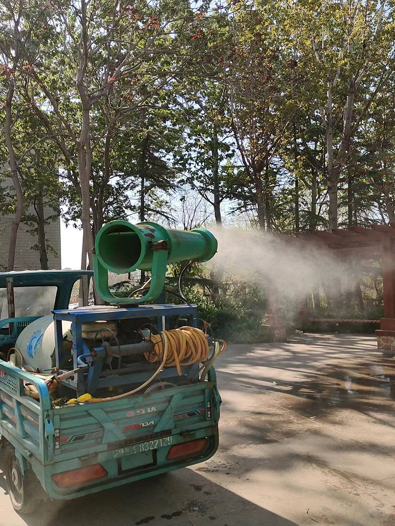 加大增濕鎖絮作業(yè)力度。在果絮開(kāi)裂期采取霧炮鎖絮的方式減少飛絮漂浮時(shí)間,使用霧炮車、高壓水槍等對(duì)楊、柳樹(shù)進(jìn)行噴施飛絮抑制劑,粘接、固定絮狀物,防止楊絮二次飄起。