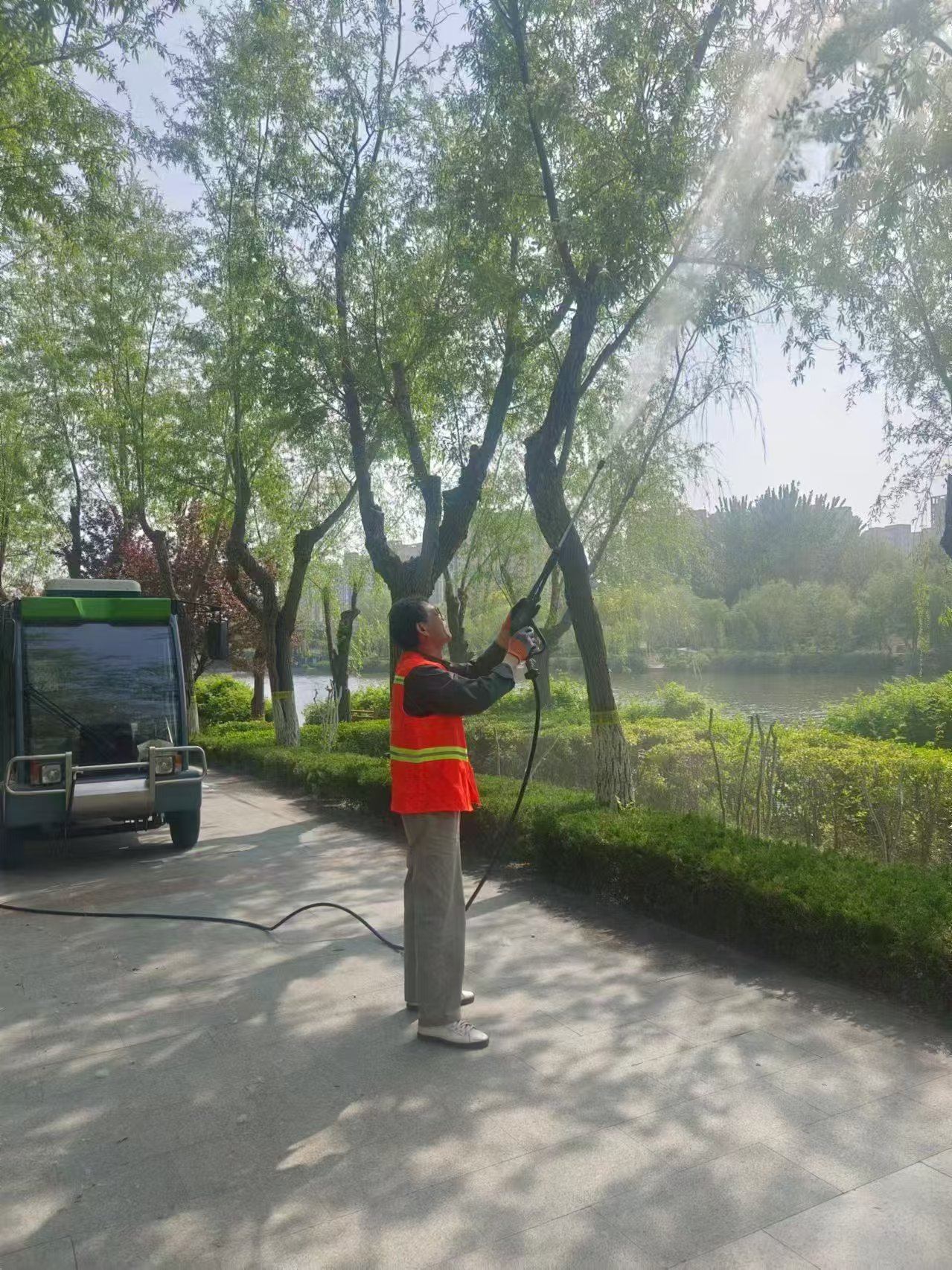 近日,隨著氣溫升高,白浪河景區(qū)內(nèi)楊柳絮開始漫天飛舞,給市民和游客的出行、生活帶來諸多不便。為有效治理楊柳絮問題,濰坊市園林環(huán)衛(wèi)集團宏大公司、白浪河公司積極行動,采取多種措施開展防治工作,全力為市民和游客營造舒適的游覽環(huán)境。? 楊柳樹作為常見的綠化樹種,在美化環(huán)境、固碳滯塵等方面發(fā)揮著重要作用。然而,楊柳樹雌株產(chǎn)生的飛絮確實會對人們的生活造成一定影響。為減少楊柳絮帶來的困擾,公司今年早謀劃、早行動,制定了詳細的防治方案。在具體防治措施上,堅持科學治理,優(yōu)先對景區(qū)內(nèi)楊柳樹過大過密的樹冠進行修剪,從源頭上減少飛絮產(chǎn)生。同時,在飛絮集中的時間段,延長景區(qū)內(nèi)澆灌開啟時長,保持地面濕潤,安排專人利用沖洗車、打藥車、景區(qū)消防車對樹冠進行噴水作業(yè),通過濕潤楊柳絮,使其加速沉降,避免再次隨風飄移。此外,為及時清理收集飄落的楊柳絮,公司增加了保潔人員和清掃頻次,采用人工清掃與機械清掃相結(jié)合的方式,對景區(qū)道路、廣場、綠化帶等區(qū)域進行全方位清理,并及時將收集的楊柳絮清運出景區(qū),防止二次污染。
