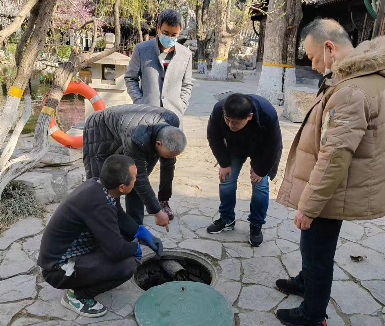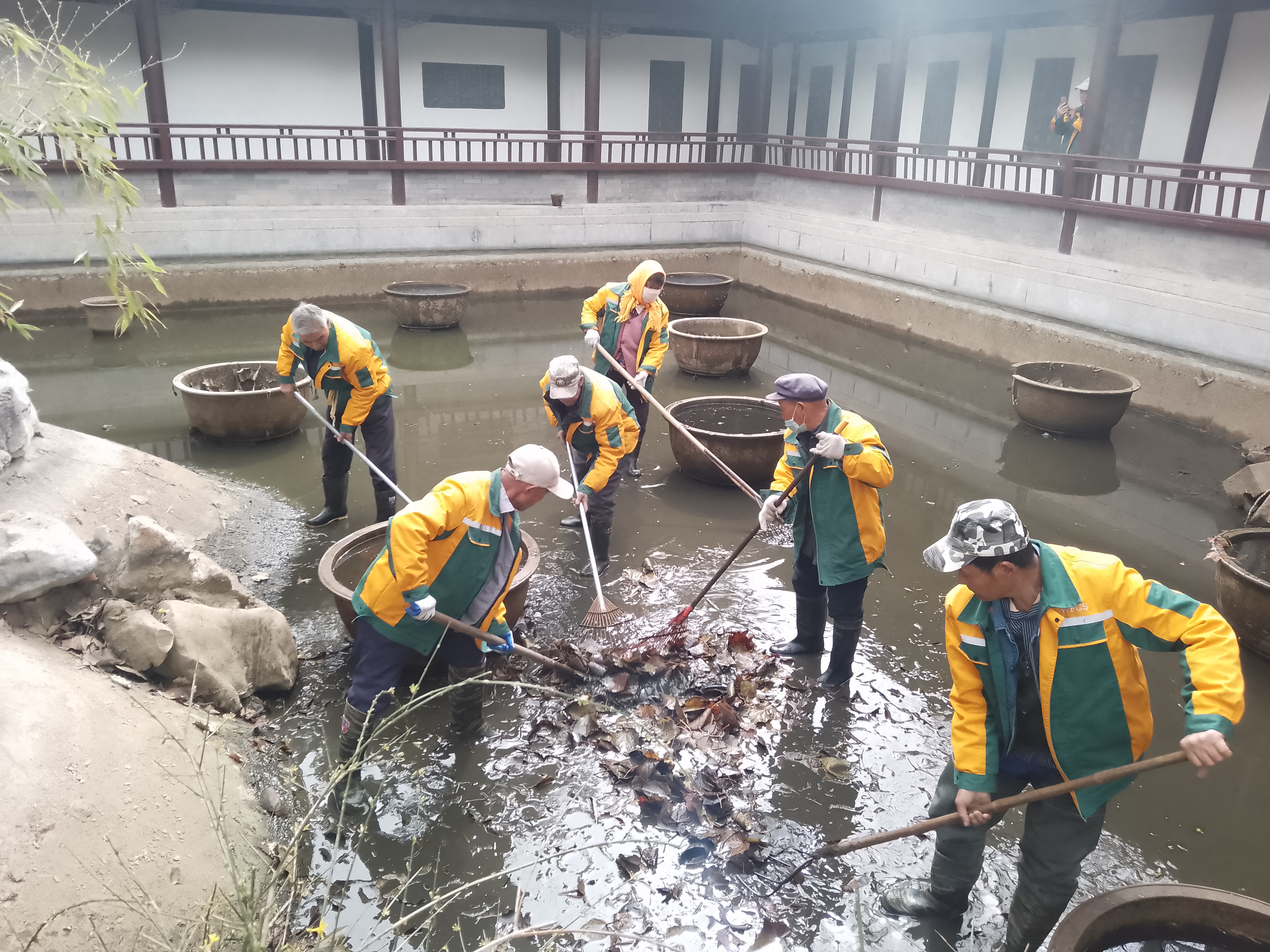 濰坊市人民公園作為市區(qū)建設(shè)最早的城市中心公園,每年春季吸引著大量的游客前來(lái)踏青游玩,溪流景觀和歸真園十里山塘景觀最是游客較為關(guān)注的兩大水體景觀。近期,隨著溫度升高,水系內(nèi)落葉腐敗和微生物的快速繁殖,造成水體水質(zhì)腐化,極大地影響了景觀水系的使用性和觀賞性。為維護(hù)好水系景觀,進(jìn)一步提高市民游覽體驗(yàn),市園林環(huán)衛(wèi)集團(tuán)宏大公司組織開(kāi)展了人民公園水系清淤、清刷工作。在市園林環(huán)衛(wèi)服務(wù)中心人民公園服務(wù)所統(tǒng)籌安排下,人民公園項(xiàng)目組現(xiàn)場(chǎng)制定水體排污、水系清刷方(預(yù))案,自2023年3月13日開(kāi)始,全面展開(kāi)人民公園水系清淤、清刷等工作,對(duì)園區(qū)排污管道進(jìn)行疏通。
