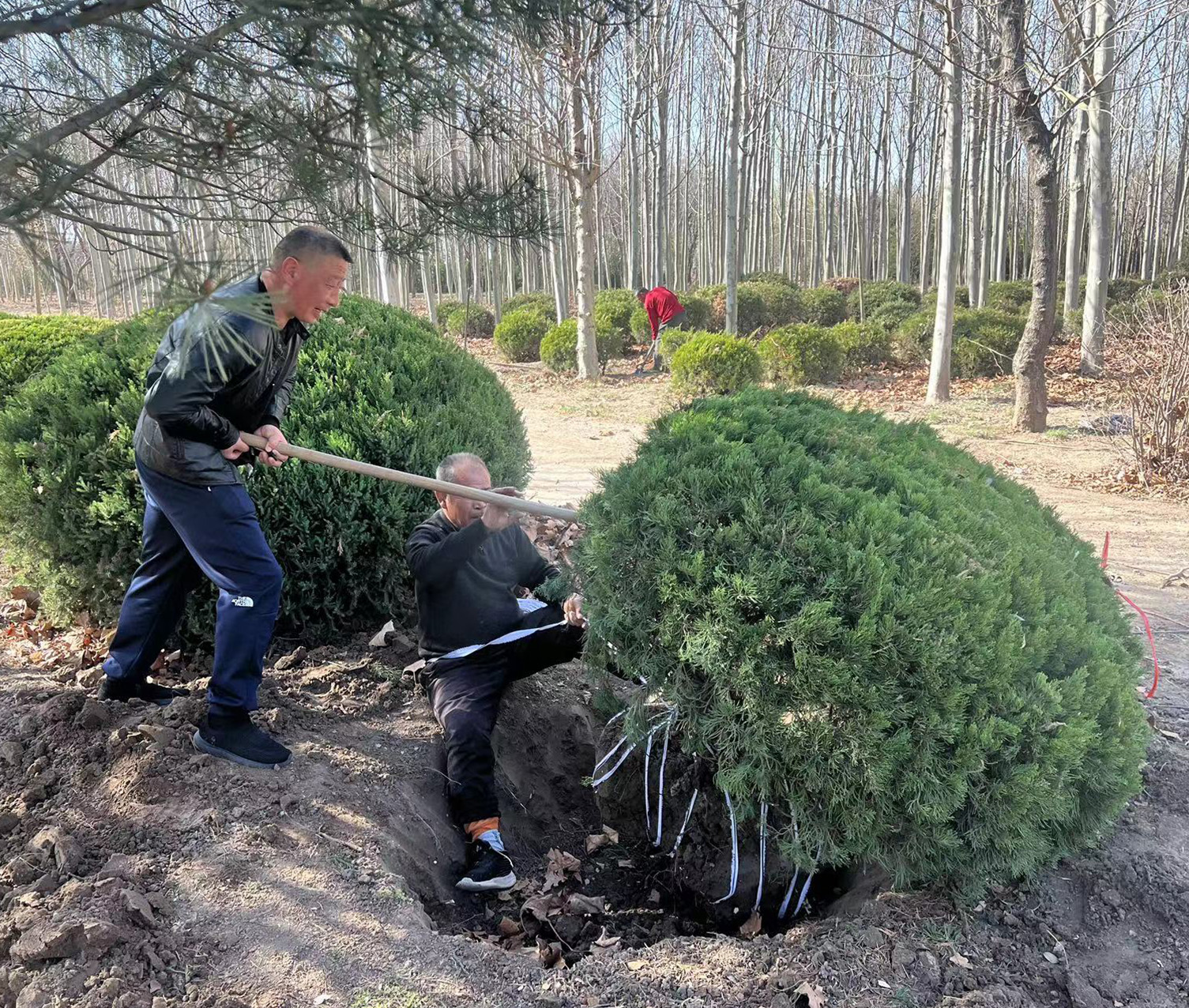 為配合集團(tuán)代管綠地的春季綠化苗木補植工作,進(jìn)一步提升城市綠化景觀效果。臻成公司自接到苗木補植任務(wù)后,立即采取行動,先后出動12名作業(yè)人員,作業(yè)挖掘機1臺,雙排貨車3輛,皮卡2輛,加班加點起苗、裝車,保質(zhì)保量按時將苗木運輸?shù)礁魇┕がF(xiàn)場。截至目前,為各代管綠地提供龍柏球、金葉女貞球、紅葉小檗、扶芳藤等等共500余株,為綠地提升工作有序開展提供堅強后盾。