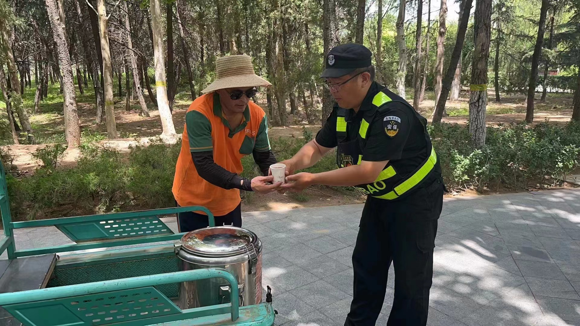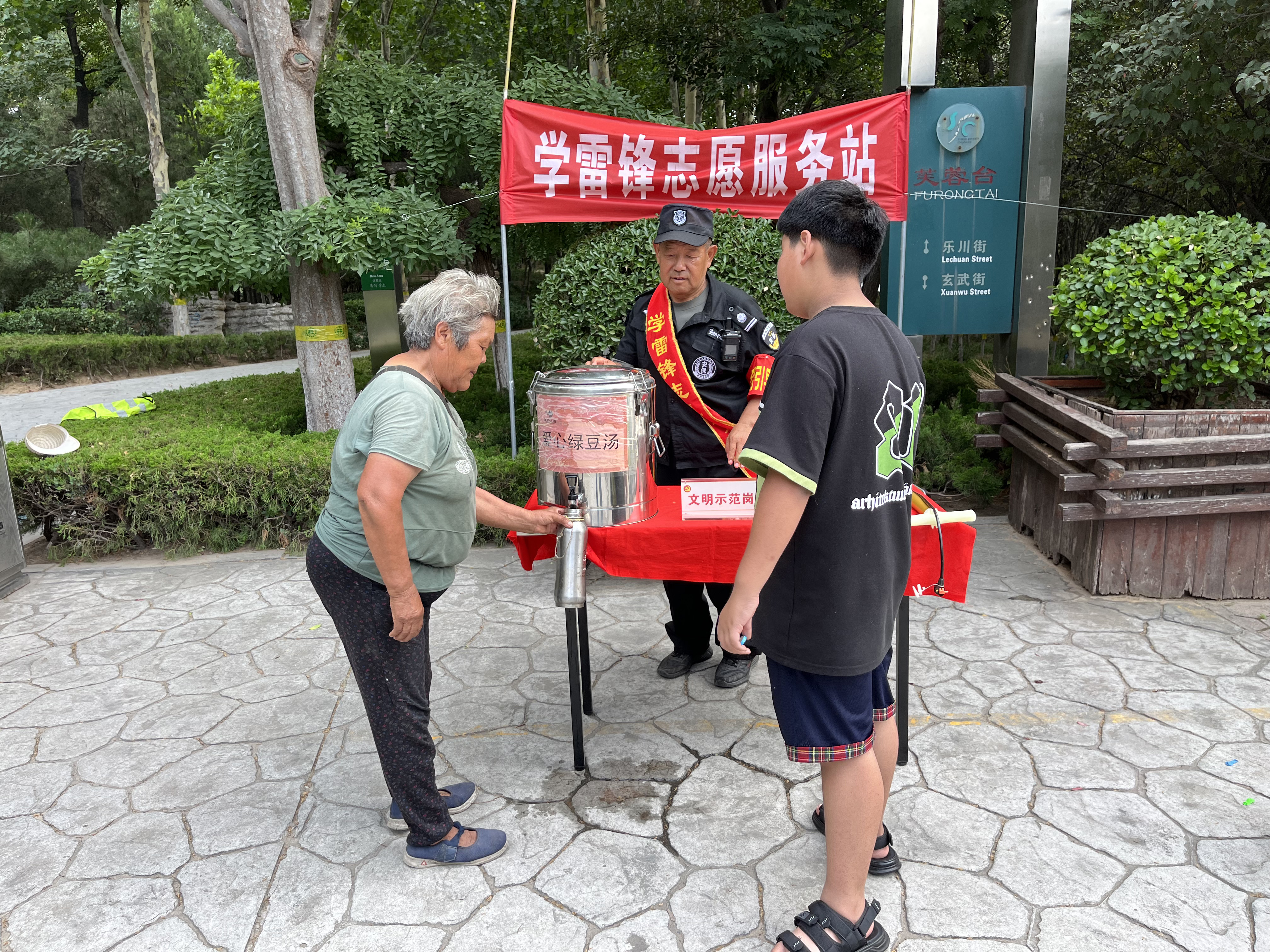 除綠豆湯外,景區(qū)的“學(xué)雷鋒志愿服務(wù)站”還配備了飲水機、打氣筒、愛心藥箱等,為景區(qū)一線工作人員和市民游客提供“渴有飲水、累可歇腳、傷可用藥”的“一站式”便民服務(wù),獲得了一線工作人員和市民游客的一致肯定和好評。