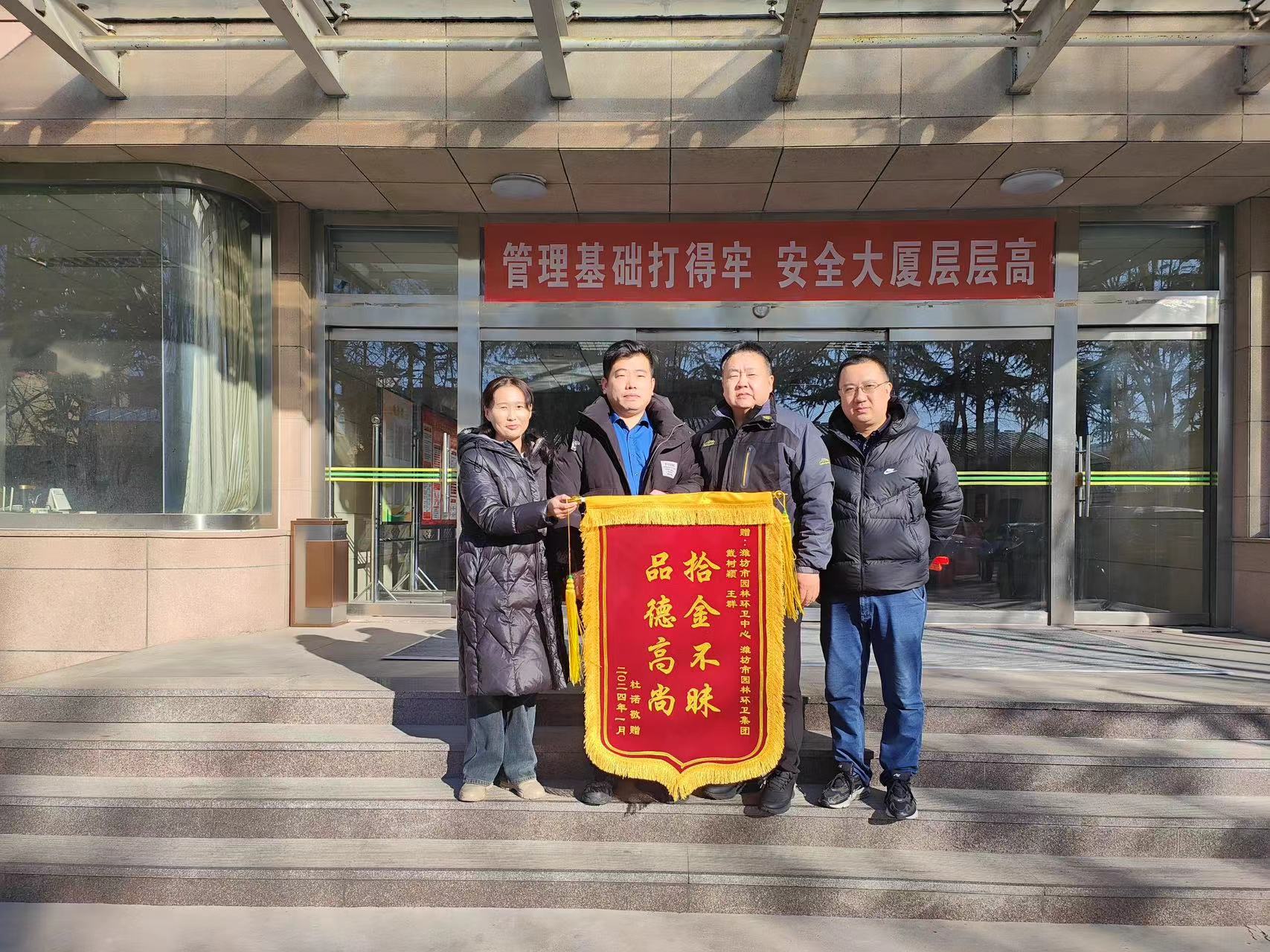 近日,市民杜女士將一面印有“拾金不昧,品德高尚”的錦旗送到了市園林環(huán)衛(wèi)集團(tuán),對(duì)集團(tuán)虞河保安項(xiàng)目組拾金不昧的行為,表達(dá)了誠(chéng)摯的感謝。